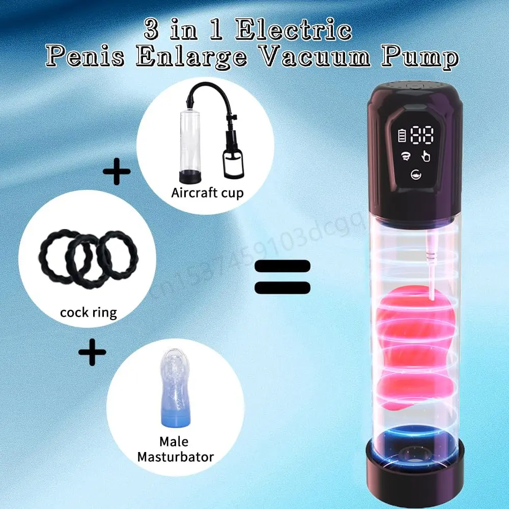 Penis Pump Penis Enlarger Extender ,3 in 1 Male Masturbator Sex Toys for Men Bigger Electric Penis Vacuum Pump 10 Smart Training