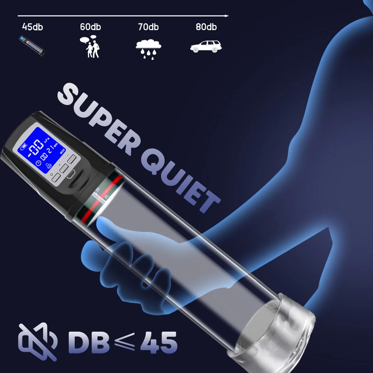 Looking for a workout that could give you impressive results almost instantly? The electric penis pump with a high-quality electric motor has a greatly increased suction power. The electric motor supports the vacuum pumping, and with the help of the safety valve the quick-release valve releases the vacuum at any time and the precise manometer regulates the vacuum suction. One-button automatic suction is easy to use and more convenient than manual. 2 control modes of this penis pump for you to choose from: intelligent constant pressure mode and manual pressure mode. You can choose mode 1 to keep a constant pressure value or mode 2 to experience an intelligent cycle of 4 different pressures. Unlike other electric penis, the automatic suction electric pump is super quiet and you can even use it at night. The Penis pump is equipped with an LCD that shows the corresponding air pressure. This makes it easy to use and helps you to understand each other even better!