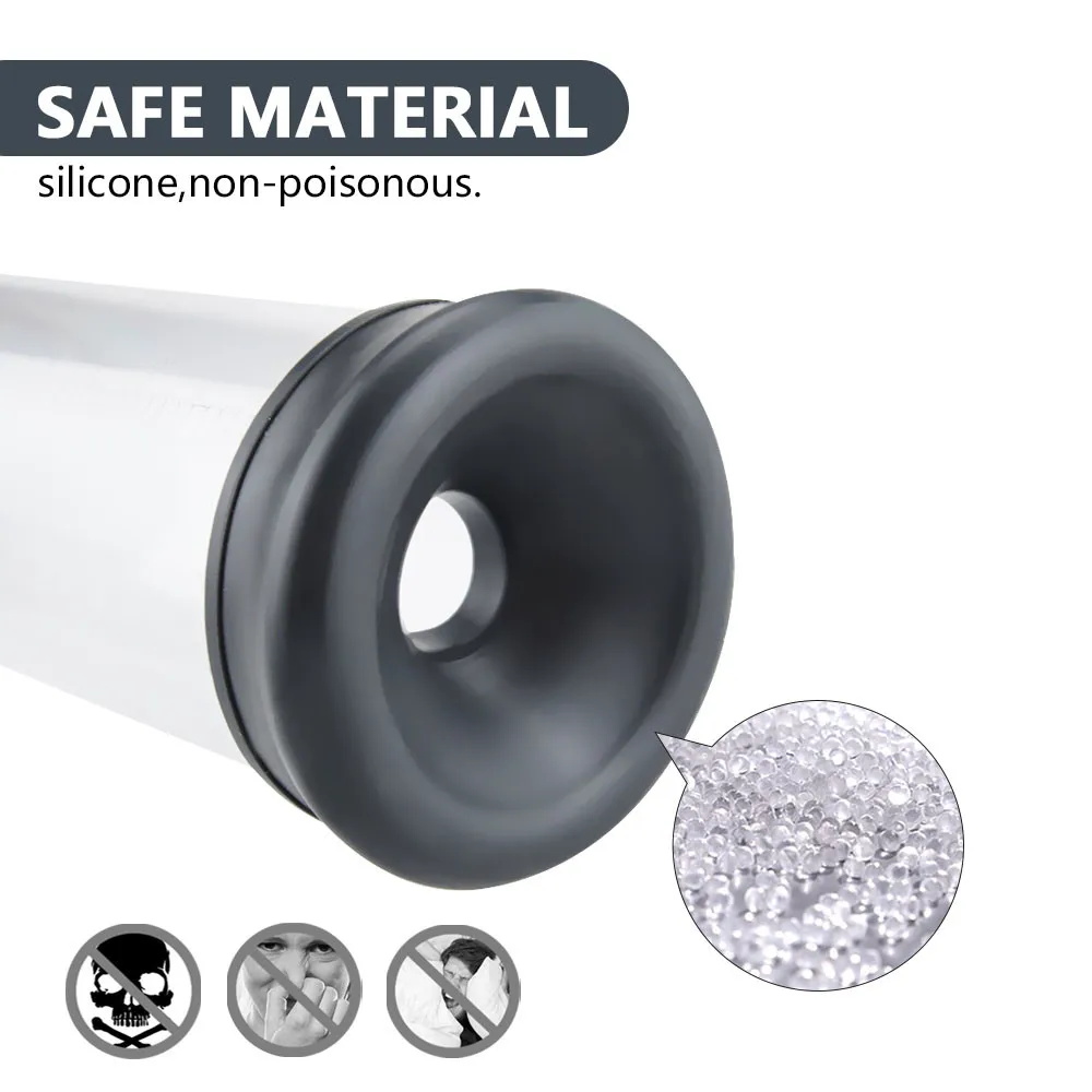 3. Slowly begin to work the pump. There will be a slight sensation as air is drawn from the cylinder. For beginners, it is important to start this process slowly to avoid discomfort. Remember to press the safety release valve if the vacuum becomes painful.