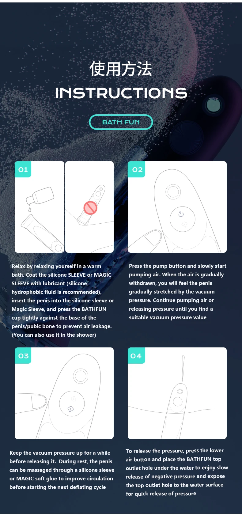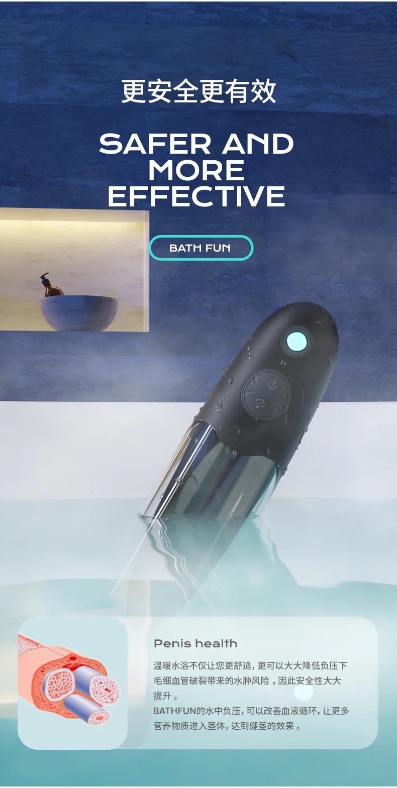 • Underwater use not only provides a more comfortable feeling, but also significantly increases comfort and safety by preventing the risk of edema due to penile capillary rupture.