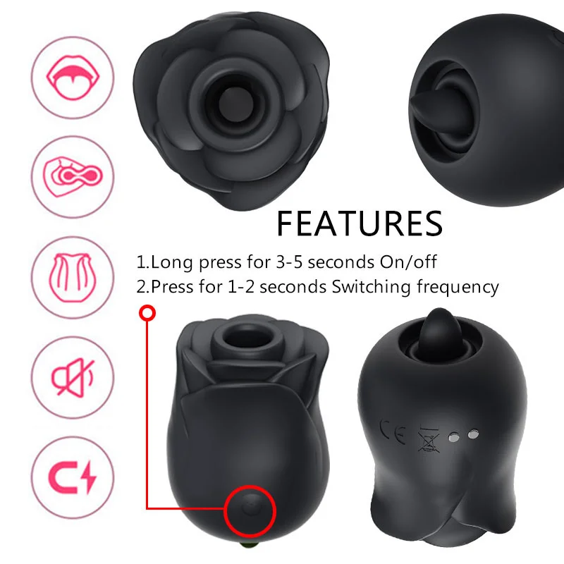 Super strong sucktion and licking rose toy, let you enjoy the super pleasure, stimulate your nipples, vagina and clitoris, experience 6 different modes which highly imitates the whole sex process from the foreplay to orgasm and find the mode which suits you best;