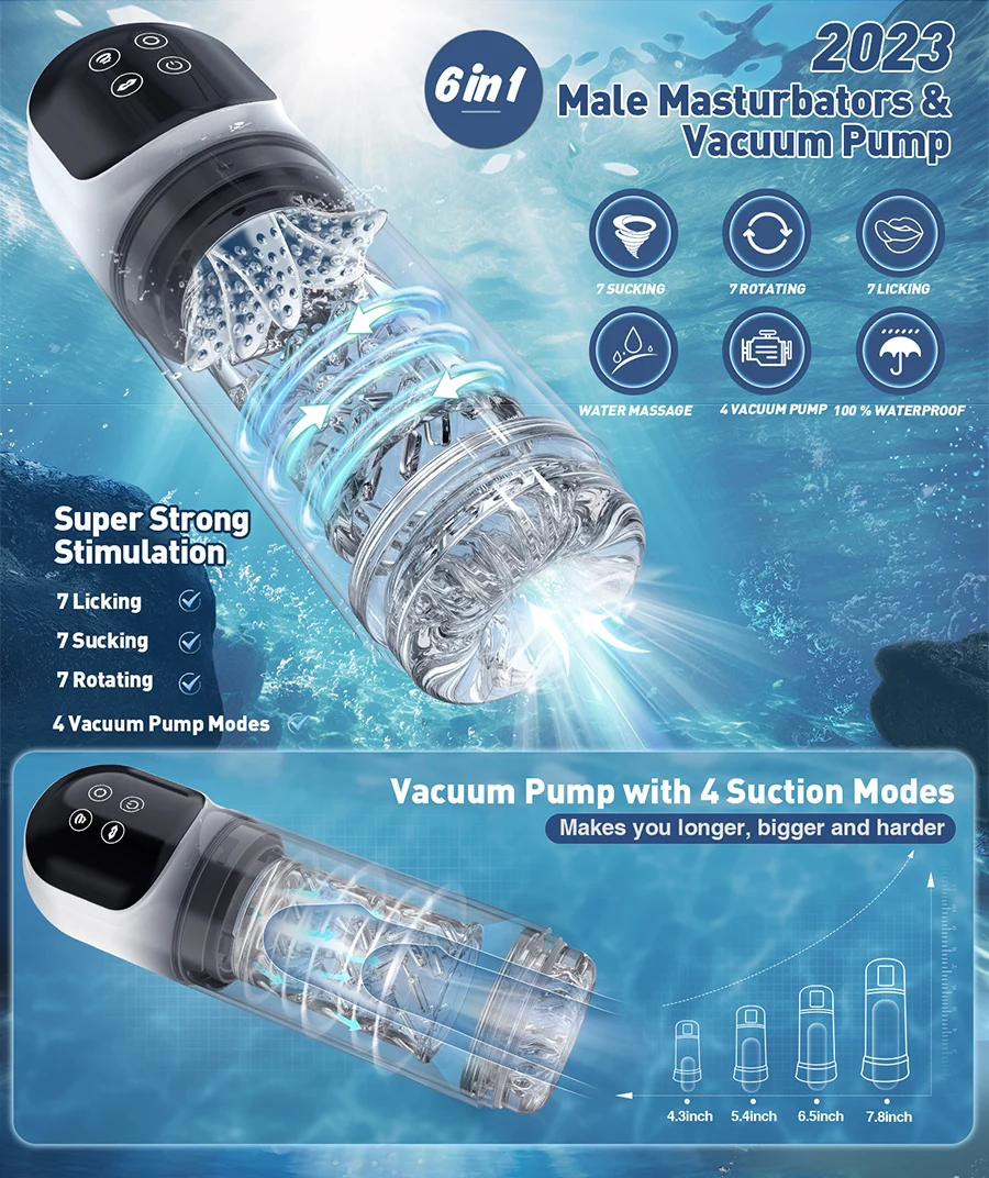 Introducing 6in1 Automatic Telescopic Sucking Vibration Masturbators For Men Pussy Vaginas For Men Real Blowjob Sex Toys For Men