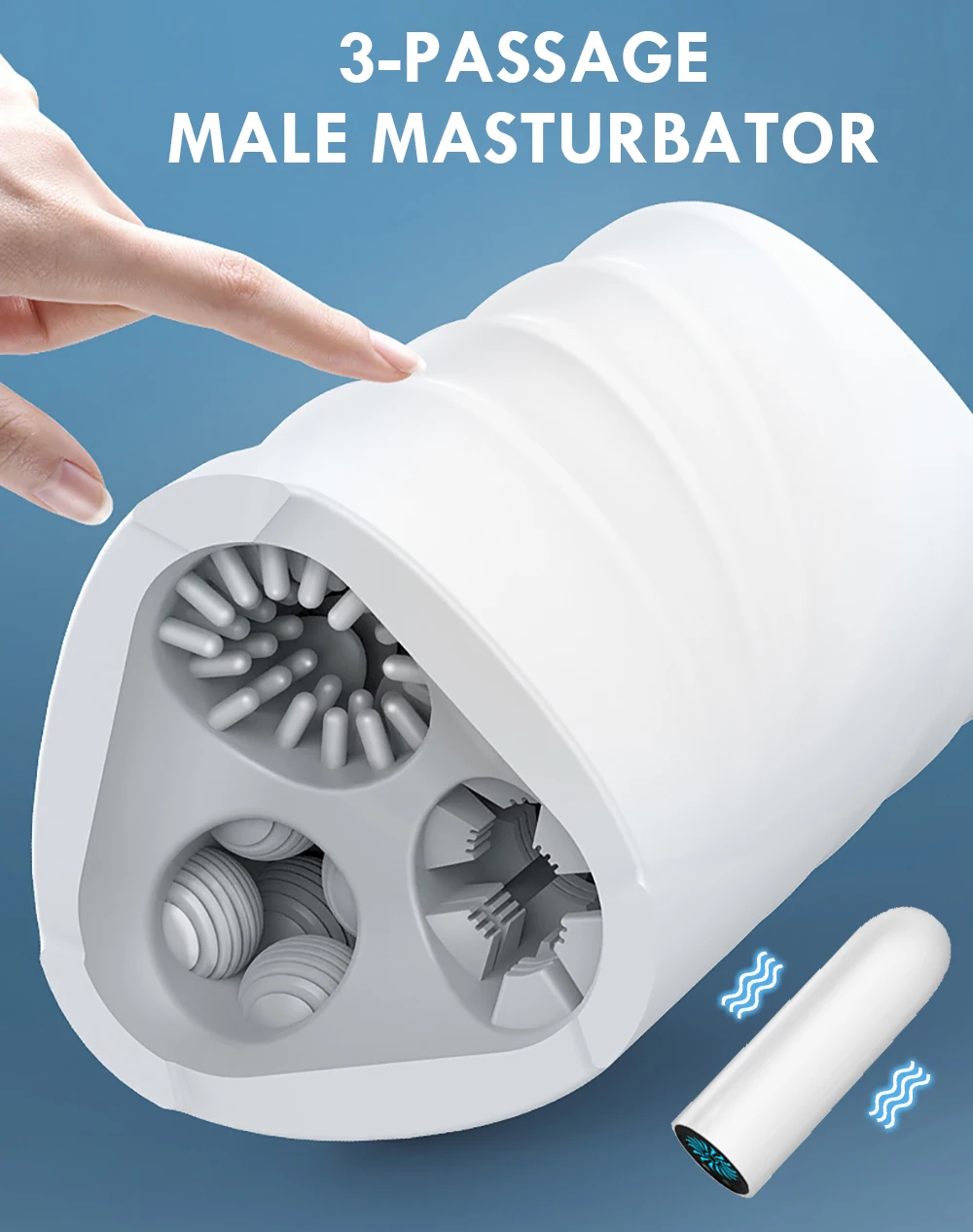 Features: Three-channel male masturbator with vibrating bullet to meet your needs