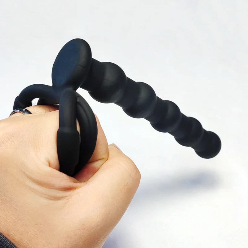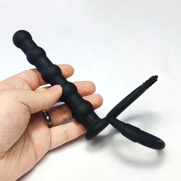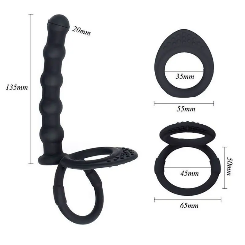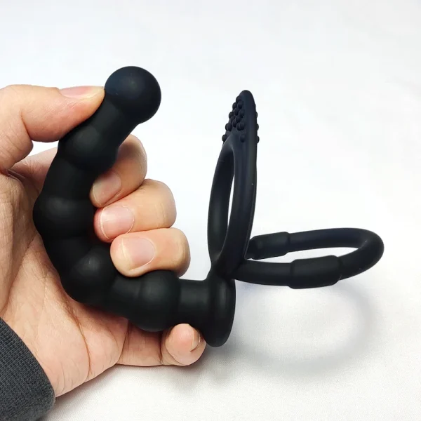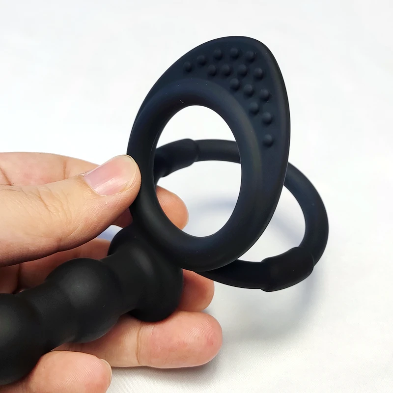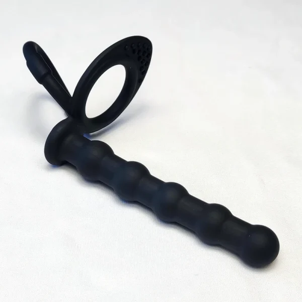 Double cock ring with realistic prober for double penetration fun