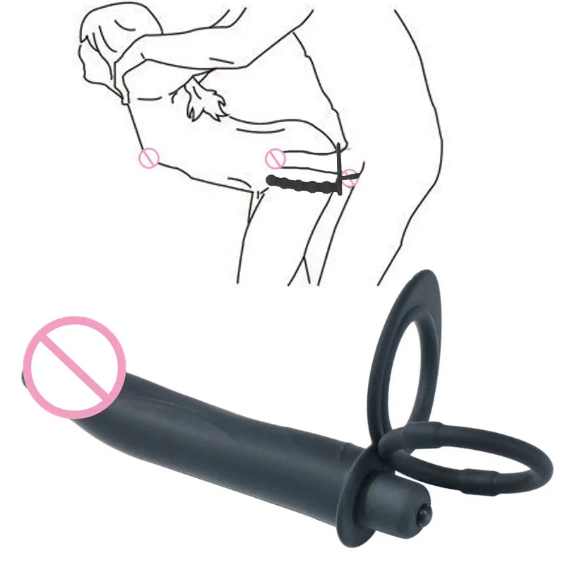 Double cock ring with realistic prober for double penetration fun
